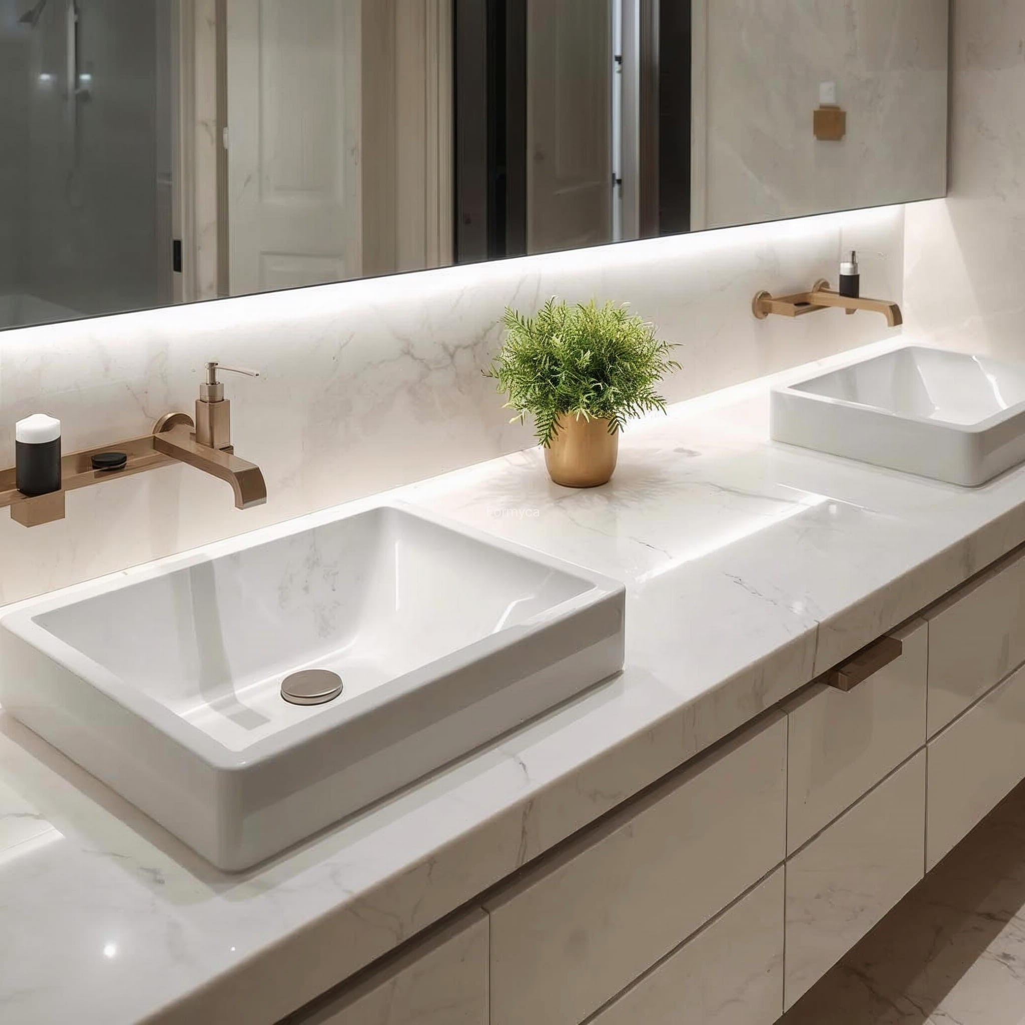 Badrumsbänkskiva i marmorkomposit Misty White 3cm